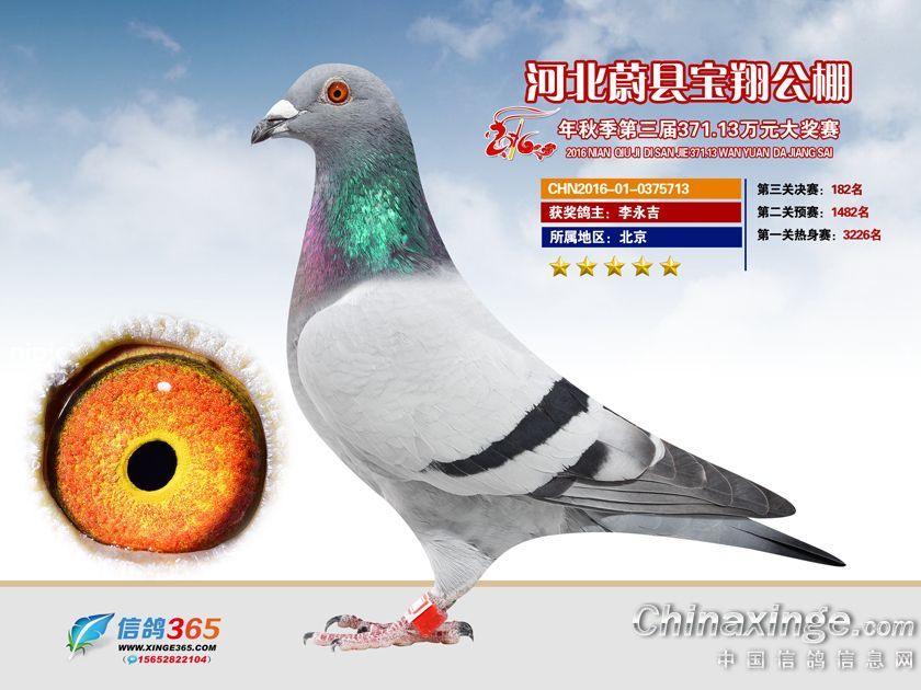 河北宝翔赛鸽公棚2016年获奖鸽181-200名
