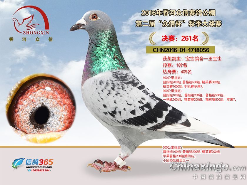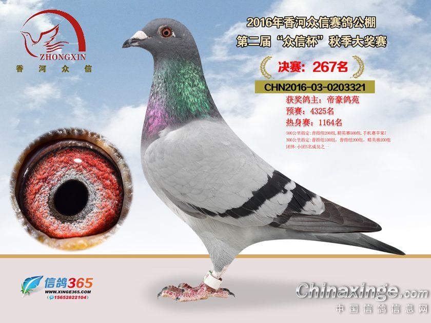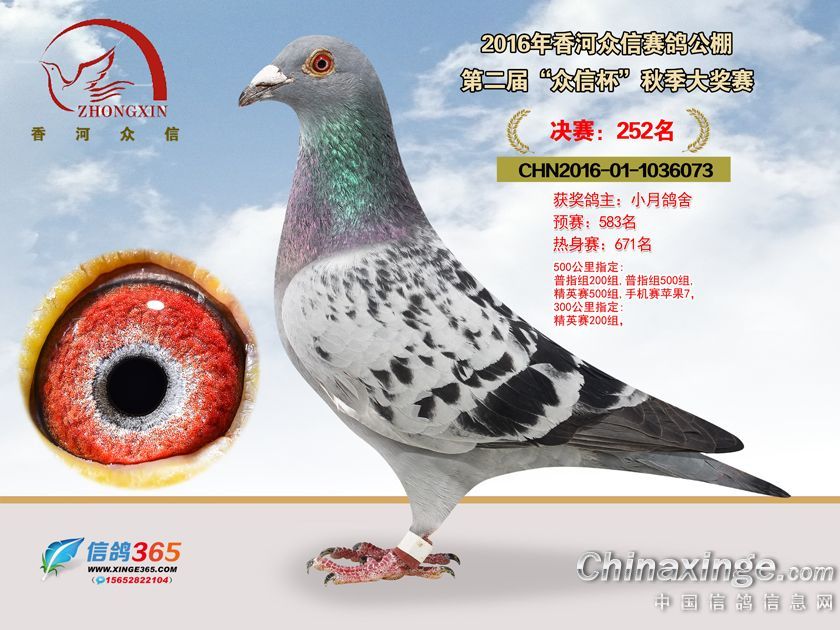 作品说明: 香河众信公棚2016年获奖鸽241-270名