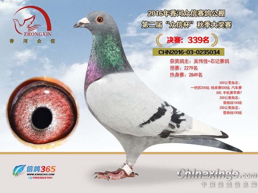 作品说明: 香河众信公棚2016年获奖鸽331-360名