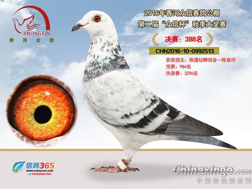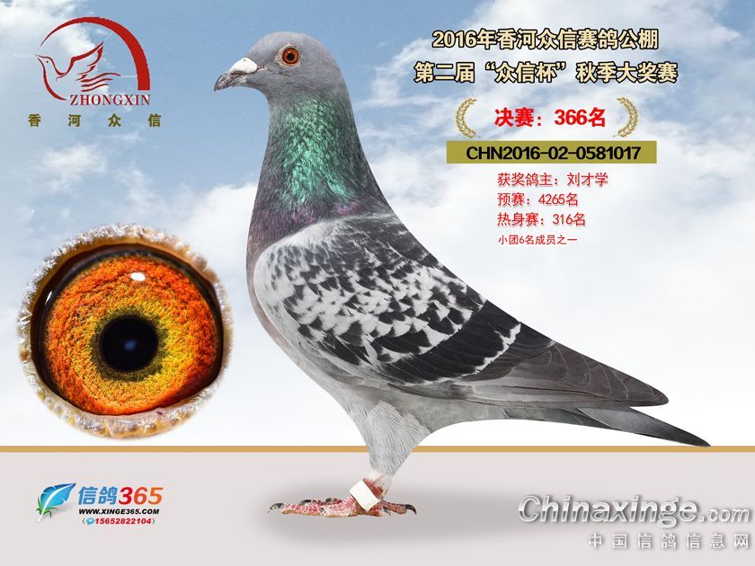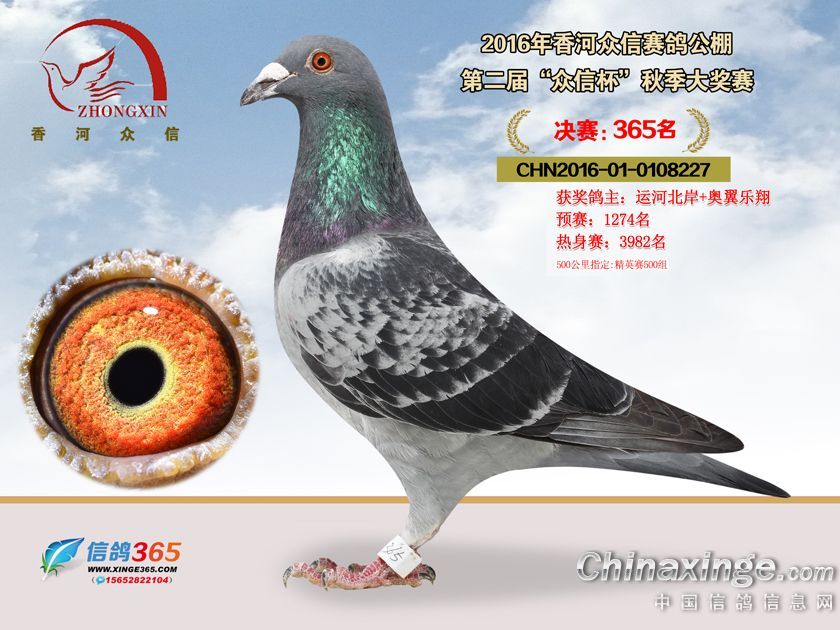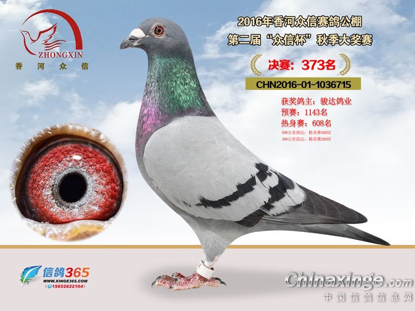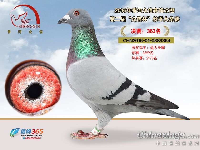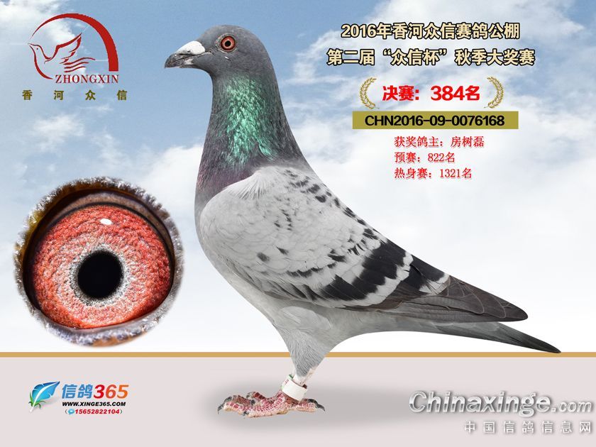 作品说明: 香河众信公棚2016年获奖鸽361-390名
