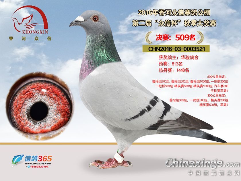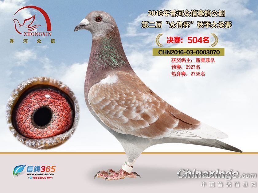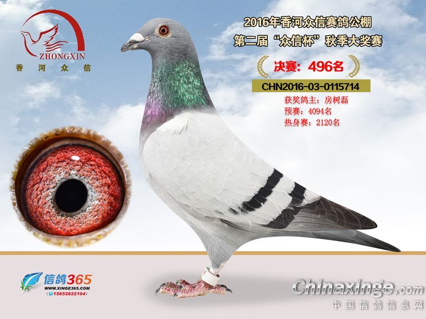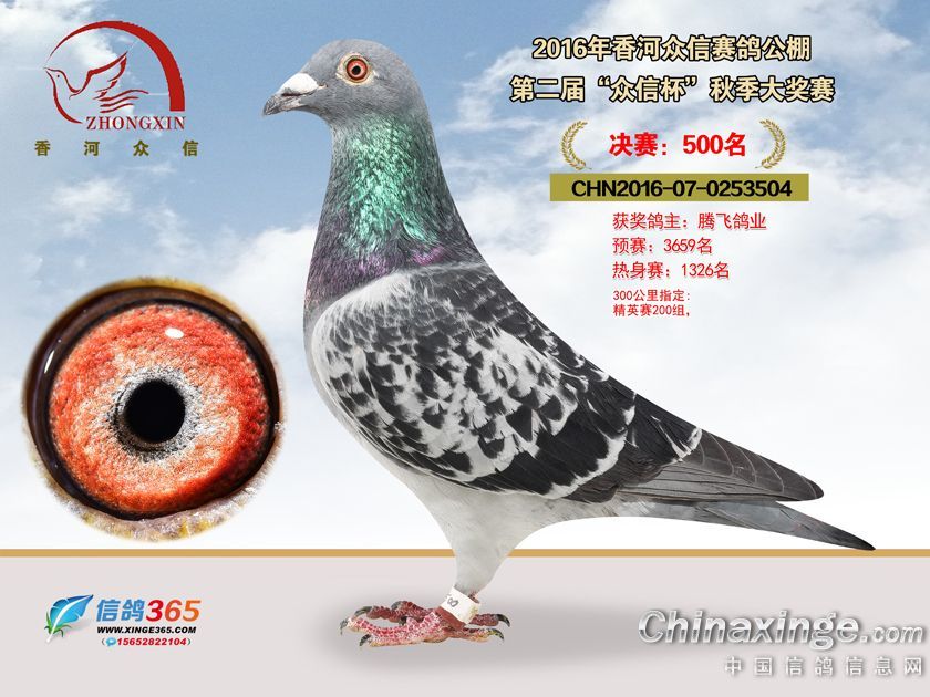 作品说明: 香河众信公棚2016年获奖鸽481-510名