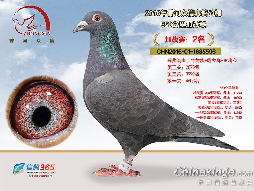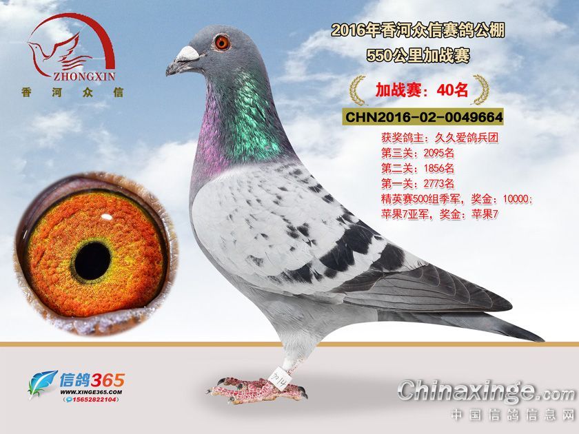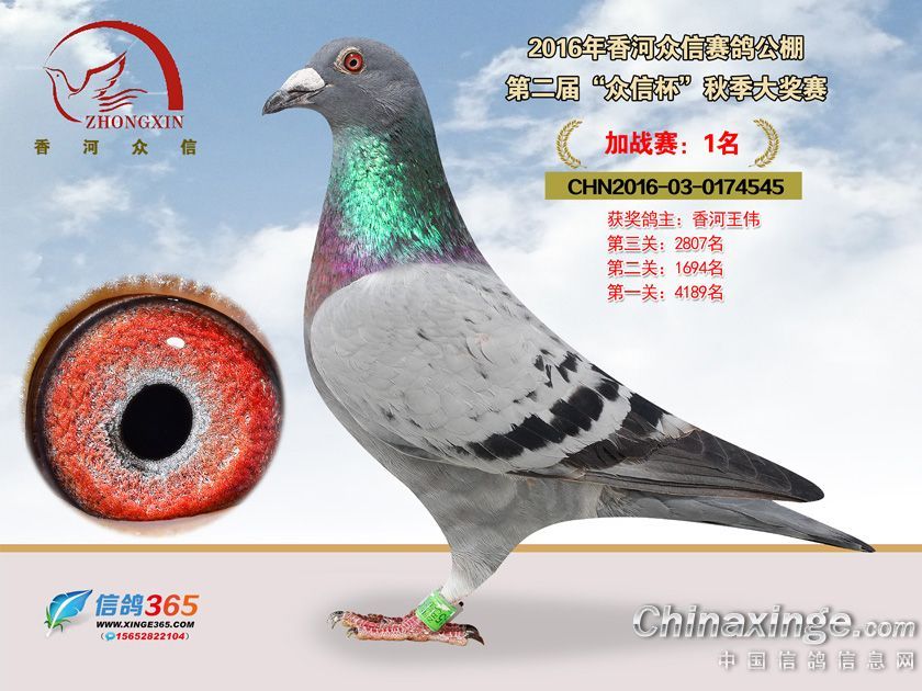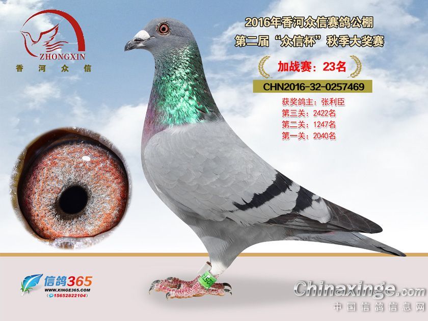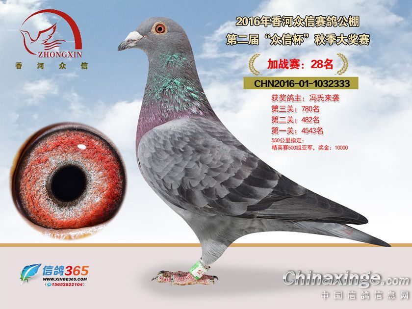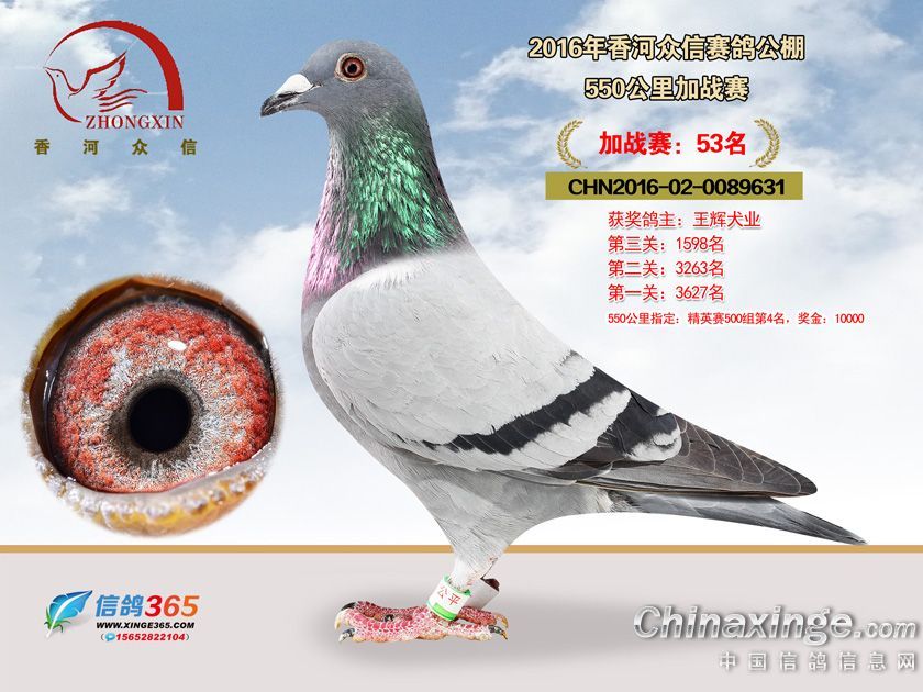 香河众信公棚550公里加站赛获奖鸽1-60名