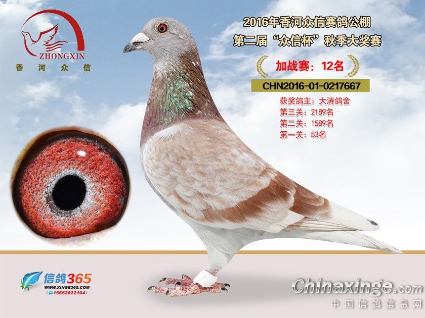 作品说明: 香河众信公棚550公里加站赛获奖鸽1-60名