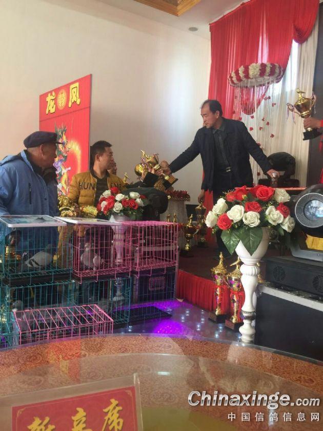 范拍卖师和刘拍卖师互相介绍获奖鸽