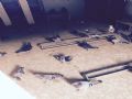 打扫卫生的工具,那把长的铲,是早上刚刚焊好的,挺好用,比短的好用,省力,省时间,适应铲地面上的鸽粪,短的铲巢箱里的粪便。