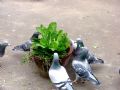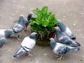 作品说明: 把白菜种在花盆,供赛鸽自由采食,还能培养野外充饥的生存能力。