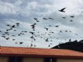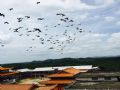 为了避开鹞子袭击,午间家飞,鸽子也飞的太低了。