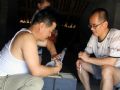 作品说明: 鸽友小侯是个热心肠人,平时总是爱给其他鸽友帮忙,所以鸽友一有事总是喜欢找他, 这不秋赛快到了,几个相好的鸽友又来找他帮忙给鸽子做防疫。我们这里大多数是农村 鸽友,也不怎么化大钱购买赛鸽专用疫苗,基本都是买的鸡用疫苗,连针头针管都是化 一元钱在小诊所卖的,不过效果还不赖,鸽友们也都放心。