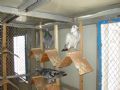 作品说明: 参加2008"秀出你的鸽舍”活动.本人8年前因故停养信鸽,今年开始又建棚养鸽,因为是建在朝北的阳台上(没有朝南的位置)要考虑冬季防风,雨季防水,还要通风,种鸽晒太阳等,用了大概4个月的设计改进,在4月初开始动工,鸽舍深4米,分2进,2米1间,外面赛鸽.里面种鸽,宽度2.3米,面积太小中间雌雄可灵活分隔,种鸽舍高2.2米,赛鸽高1.8米,落差0.4米做种鸽舍到晒棚的进出口或通风口,从动工到建成用了35天,共花了7000元,不包括原有的材料和自己一起干的工资,自己感觉很满意.