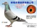 作品说明: 此冠军鸽是永固公棚550公里加站赛的冠军,上笼1465羽,分速1364,拍卖会时听公棚工作人员讲, 此鸽当时回来后状态极佳,单独归巢,一骑绝尘,回来后没立刻进棚,而是在公棚上站立6分钟之多, 后才进棚扫描,领先亚军3分钟,此鸽是纯克拉克血系,符合克拉克回来不立刻进棚的特点,但关键 时,他还是勇夺公棚冠军!也是本舍第一个公棚冠军
