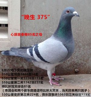 作品说明: 我深爱的“谢氏詹森”家族,从2014年陪伴我至今,因为有了这个能征善战的家族,我逐步淘汰了家里的“雷蒙德-赫尔梅斯”和“路易士-凡尔亚罕”家族,它们是现在我的鸽子主要血统。说到谢氏詹森,不得不提“幸运633”这只鸽子,是因为这只鸽子,才让我真正认识到这个血统魅力和价值!这只鸽子名字背后隐藏着一个疯狂而又难忘的故事。提到这个故事,瞬间把我思维拉回了几年之前,那是2014年赛鸽缘俱乐部安庆决赛前夕,我把这只鸽子送给我来郑州玩将要回老家的姨,让她带回去炖吃补养身体呢。我当天一大早起来就把“幸运633”和另外一只鸽子抓起来,装在了一个小小的牛奶盒子里,然后喂了阳台棚里的其它鸽子,它俩因为要送人杀吃所以没喂,喂完鸽子直接提着它俩就去了我姨住处给了她,本来她打算坐当天下午的客车走呢,因为高速路封闭缘故没走成,然后去买了第二天的下午火车票,等于又停了一天没走成,这俩鸽子就关在小小的牛奶盒里,没吃没喝一直关着。第二天下午,我正在上着班呢,突然接到我姨的电话,她说到车站人家不让带,我就让她在车站直接放开,然后她就乘车回去了。晚上我回到家,赛鸽缘俱乐部当晚集鸽安庆决赛,因为我当时阳台棚的缘故没有参加比赛,棚里的鸽子全部跟着训放,当时有十几只鸽子可以上,我把他们抓好了放在笼子里,没抓“幸运633”因为它已经两天没吃东西了,在牛奶盒里关两天了,当天下午从车站飞回来,只能是在鸽棚喝点水。我提着鸽子开始下楼了,走一半又回来了,心想把它也上了吧,一身脏灰色羽毛黑不溜秋的,一直不怎么待见它,丢了就算了自然淘汰吧,就把它也抓起来送去俱乐部了!第二天下午,早早的回去坐在阳台上等鸽子,因为安庆赛线地处东南,鸽子开笼以后要翻越大别山回来,对于平原鸽子来说难度系数很大,这条赛线是郑州市目前的赛线里最难飞的,加上当天雾霾严重,鸽子归巢更是难上加难。按照常规的比赛分速鸽子早该到了,可是当天迟迟不见鸽子,鸽友们估计都等的焦急了,我当时更是没报什么希望了,我的鸽子当时就放过110里220公里400公里,就直接上530公里安庆了。心想这些鸽子估计都该丢了,家飞一般又缺乏系统训练,加上这天气这赛线基本无望了,特别是关牛奶盒里饿两天的这只,更是不用想了。正在纠结呢,一朋友给我打电话说南边的鸽友到鸽子了,听到这个消息瞬间在无望而又焦急的心里,燃起点点希望,赶紧从凳子上起身站起来,望着鸽子回来的方向。突然,从高空滑落一只鸽子,落在了降落台上,累的两个膀子都抬不起来了,晃晃悠悠走进了鸽棚里,我仔细一看竟然是这只关在牛奶盒里饿了两天的鸽子,瞬间的喜悦和愧疚感涌上心头,鼻子酸酸的脑袋蒙蒙的,呆呆的看着它良久,是它的能力和魅力震撼了我,怎么也想不到它能回来,还能这么快回来,我参考了当时回来的时间和空距,它能飞进前70名,对于我来说它太神奇了,也太不容易了!因为,这次的出色表现我就把留了下来,直到15年我新建了现在的赛鸽棚,16年开始正式参加比赛,这只鸽子当年就给我做出了赛鸽缘俱乐部的奖鸽,第二年它做出的孩子个个都能获奖,第三年又给我做出了俱乐部的奖鸽,而且孙代初次送公棚飞了85名的成绩。取这个名字,是因为它本身的幸运没有被杀,它在残酷的环境下证实了自己的实力,也是我的幸运把它留了下来,给我带来了喜悦和荣誉,它的脚环号是633,所以我给它取名叫“幸运633”,来纪念和感恩这只鸽子!