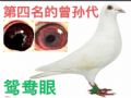 作品说明: 彪哥赠予的灰鸽其祖母是2015年秋赛第四名,在本舍产生下代春赛四羽、纯白色鸽 子,可爱及了!羽毛比其曾祖母更纯,请一起来欣赏彪哥2015年秋赛第四名的图片,以 及在本舍的下代鸽眼图片。