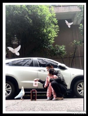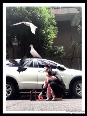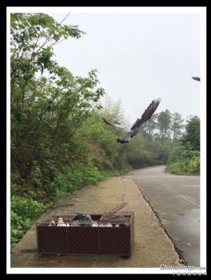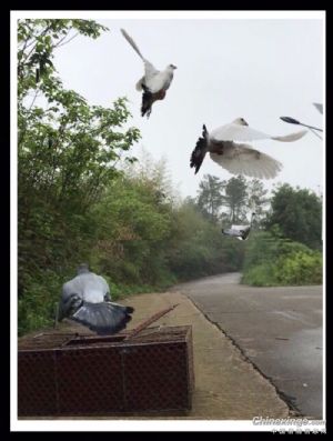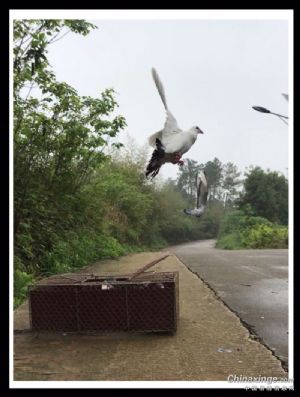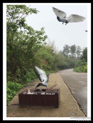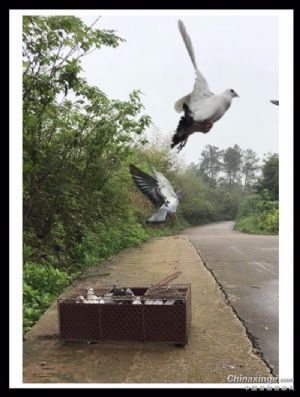 作品说明: 利哥的鸽子就是牛,他的鸽子从不打流。如果说好鸽子是飞出来的,那么,成功地跳站训放才是检验种鸽的唯一标准,在我们会员中利哥的鸽子就是这么牛。2021年4月17日,我把利哥赠给我的鸽子只起动了一次放北方向5公里,第五天又把这9羽千元环鸽子放南方向100公里,当天上午成功地归巢9羽。说起训放,很多会都说带着老婆一起参加是养鸽人最快乐、最幸福的事,其实,我认为抱着孙女去训放鸽子才有快乐如神仙的感觉。只要我们坚持放飞郴州、放飞梦想、竟翔的分速一定会冲出亚洲、超越欧洲,这样,再加上我们有家人的陪伴就能真正感受到养鸽子的快乐。