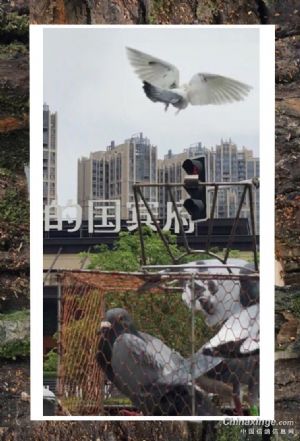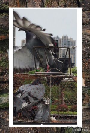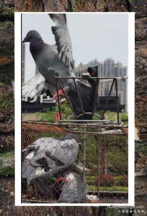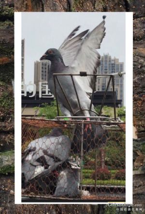 作品说明: 我深信这个道理:好鸽子是飞出来的,于是,我每天准时去门店上班都会带着我的鸽子放飞,路程正好是35公里,其分速惊人,如果是决赛有这惊人的分速,那一定是世界冠军了,有时候遇上大暴雨不停、才会到下班带回家。