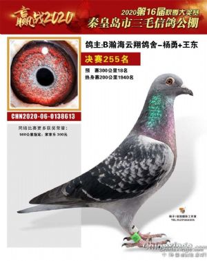 作品说明: 2021年春赛训放16羽,训放期间丢失2羽,第一关300公里上笼14羽,归巢12羽,成功取得冠军。冠军压棚了,还有一羽大条断一根放弃比赛。第二关500公里上笼十羽,归巢9羽,有一羽受伤,有两羽老种鸽出的留下压棚,第三关500公里上笼6羽归巢5羽最好成绩15名,三关排名4位。春赛圆满结束。