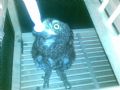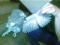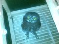 作品说明: 今天下着雨,这只刚刚出窝羽翼未丰的小猫头鹰被隔壁邻居抓到用绳子系着,我看着小猫头鹰在小雨里被淋着,脚被绳子系的真是可怜,我就讨来放笼子里养着看,等稳定下来再移交给有关部门。