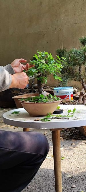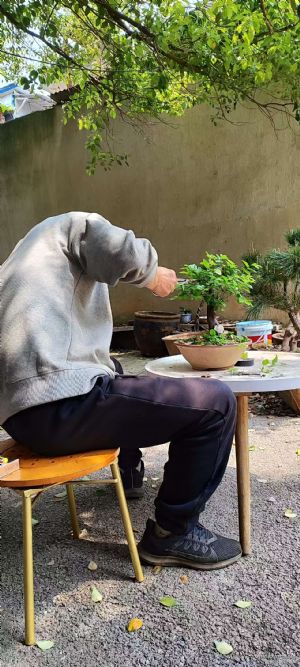 作品说明: 2025年4月8号天气晴,气温24度,南风三级,为迎接市协的验资,赛前逆风100公里训放长沙、铜官窑热身启动,当天归巢率很高,还有两羽千元环未归,希望明天一定归来,当天回归的平均分速1400米,虽然最快的分速达到了2000米,但其它的分速不是很理想。今年的阳春四月里很多鸽友丢失鸽子的現象很严重,也有少数人已经“毕业了”,我也因此比较紧张,为了缓解自己的压力调整心态,只能自娱自乐地修剪、陶醉在盆景的艺术中,面对多种不利的情况,我依然很期待自己的鸽子在今年春赛中能飞出好的成绩。