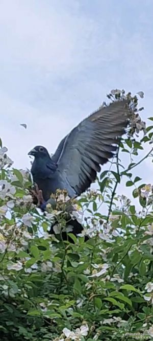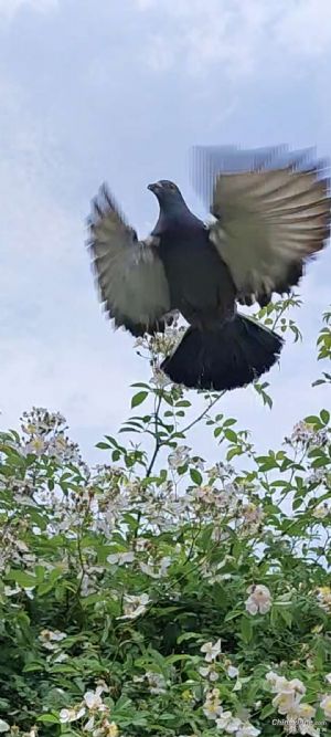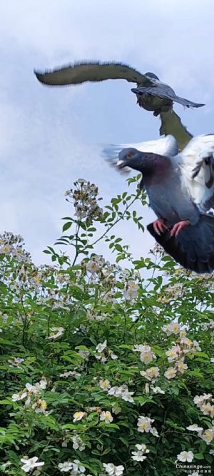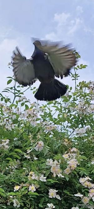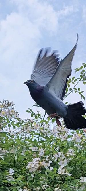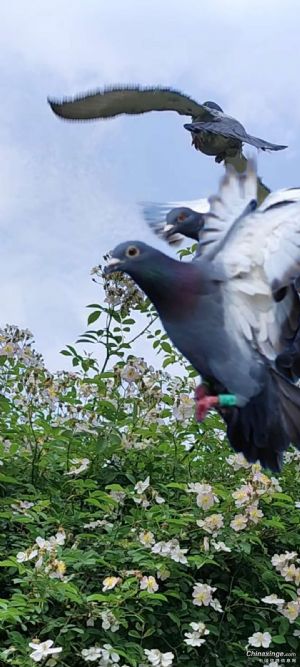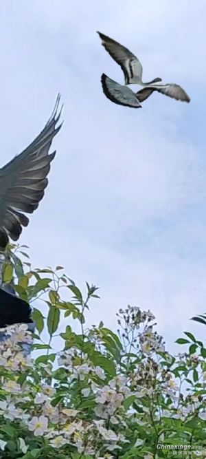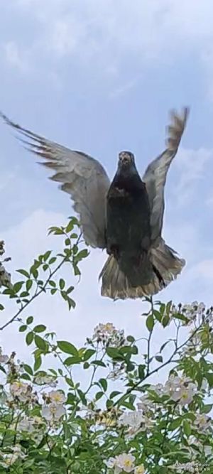 作品说明: 2025年4月21日晴,气温33度,南风三级逆风,训放岳阳200公里,平均分速800千米。下午2点50全部归巢。
