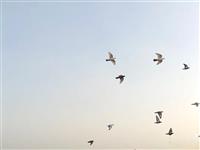 晴空下的群鸽剪影