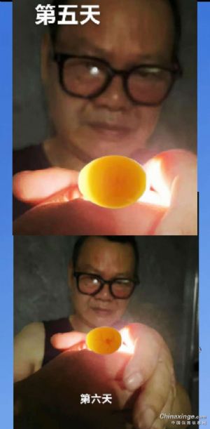 作品说明: 赛鸽健康从孵化期要很抓以下几个方面: 一、种蛋品质:优质的种蛋表面应光洁,蛋壳均匀、厚薄适中。在光照下白里透红,能看清蛋黄居中且微微浮动。 二、胚胎听、照、感受抖动的频率:这是一种不手轻视的重要监督措施,健康人的一呼一吸胚胎在光照的作用下血丝就会抖动一次,慢于这个节奏该种鸽亚健康,脴胎将来不适宜参赛且难成活。 三、胚胎早教:种鸽是否健康看胚胎的音乐感觉,当手机打开音乐、蛋放在手机频上能看到抖动频率加快,有时候抖动出慢三步的节奏,这是早教、健康、聪明、快乐的表现。 四、此时,如果父母鸽参赛前感受胚胎抖动的信号就越快,归巢欲望更强、分速更快。 五、胚胎发育:孵化至10天后蛋会变黑,气室增大,这有利于为成形的胎雏提供充足氧气。到15-16天,胎雏发育成熟开始啄壳,抖动感会更强烈。 六、此时把鸽蛋贴在耳朵上能听到胎雏啄壳声频繁、有力且有节奏的快三步声响,说明胎雏体质强壮。 七、出壳情况:正常情况下,赛鸽的孵化期为1为17至18天。 八、如果幼鸽能在正常时间内顺利出壳,且蛋壳的齿线整齐有序,内壁干净无胎毛残留和血污,胎粪洁净,通常意味着幼鸽较为健康。 九、此外,在孵化期保持适宜的温度和湿度,以及良好的通风条件,对赛鸽胚胎的健康发育也至关重要。发现亚健康的情况随时淘汰,总的来说赛鸽健康从孵化期很抓。