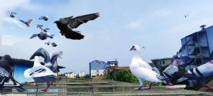 | 作品说明: 我家顶楼的铁笼鸽舍里,住着60只秋赛信鸽,血统金太阳、它们是来自会长家的一批雏鸟,羽毛从鹅黄褪成瓦灰那天起,我就每天拎着小旗在楼顶踱步,哨音穿过晨雾,惊得它们扑棱棱掠过晾衣绳。今天是它们头一回集体挑战五十公里,天没亮,我就蹲在笼前数了三遍脚环——“小点子”的左翅有撮白(叉条),“老歪”的喙总歪向一边,还有那只最怯生的“灰姑娘”,总躲在伙伴们身后。