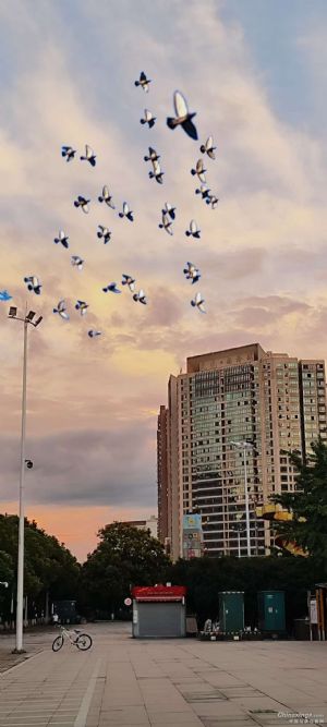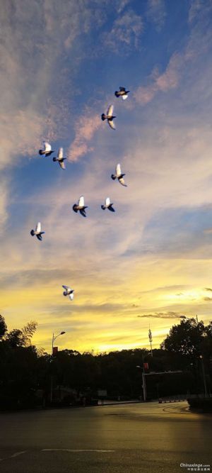 作品说明: 秋后的日出湘江红似火,湖南湘潭秋意最浓,训放信鸽四周飞50公里是秋赛前重要的第一课,美丽湖南遍地都是荷花、荷叶、莲子、谷子已成熟,田野呈一片金黄;清晨有缸色调的薄雾,日出后渐散,空气带着农作物的清香。 立秋后四方50公里内,虽秋意浓淡有别,但均已褪去盛夏燥热,清风、秋色与丰收景致交织,训放信鸽翱翔蓝天尽显秋高气爽的初秋韵味。