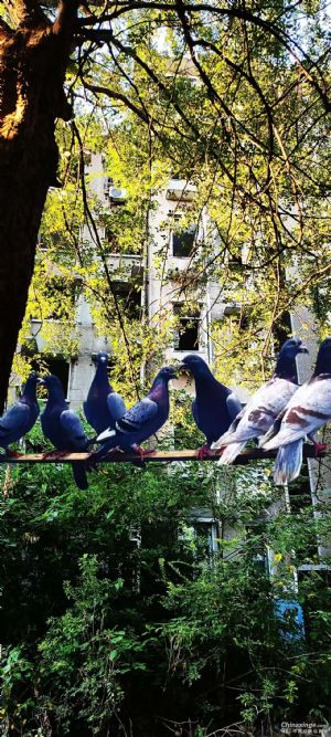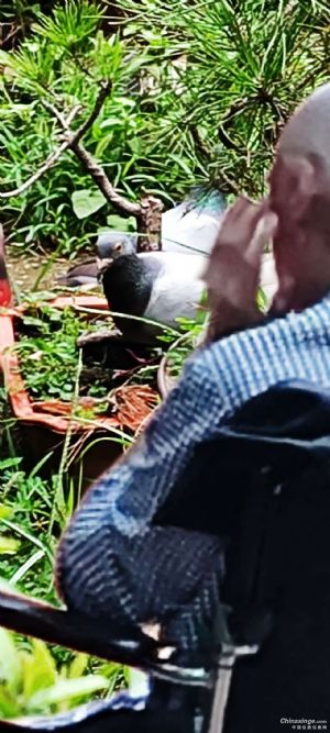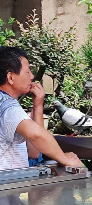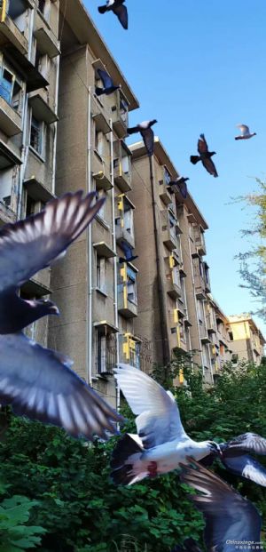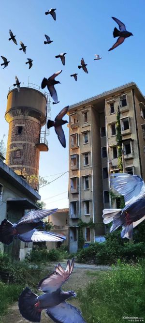 作品说明: 2025年8月16日上午、晴,笔者采访了90高龄已退会的鸽友李师傅。我很清楚地记得是去年的今天他因年老又加上拆迁並已退会,舍内鸽子一羽不留低价转让。时隔一年的今天他却又拥有数不清的百多只鸽子。 故事当然是拆迁遇钉子户至使两栋楼(八个单元)无法拆迁,如今人去楼空。后来是李师傅的几只逃笼鸟独占此楼,並且每天在地上寻觅食物如饥似喝,致使李师傅大发慈悲心並租住在傍边的平房,为了鸽子的生存,他在外装了水、建了水池、种了些花和草,每天充足供食亲和力很好。目前,百多羽鸽子自由分别住在这两栋空楼里。吃食的时候下地就可看到大多数鸽子都是赤脚,偶尔也有戴环的鸽子,我想看看此鸽,他抓把食手一伸就飞上来8只鸽子,原来很多都是外地来的天落鸟,致使他的鸽子越来越多,他,养鸽一生爱鸽一生,真是人鸽情未了。