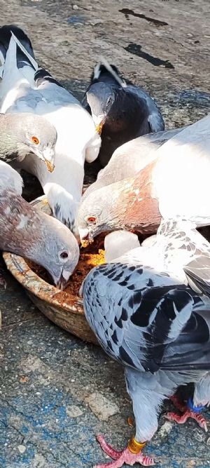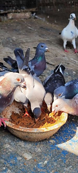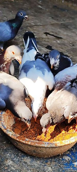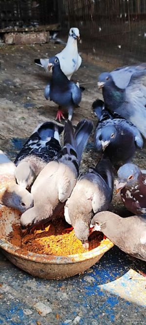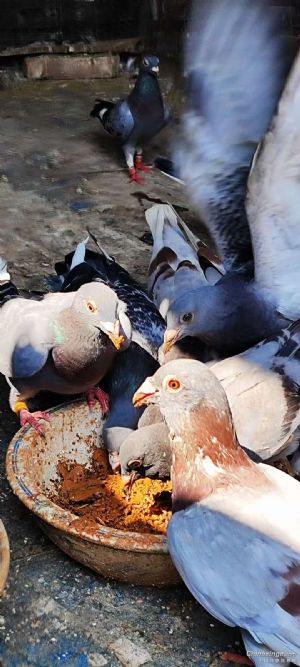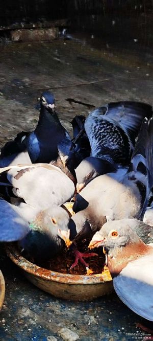作品说明: 2025年9月2日,天气阴、最低温降至26度。今天早上训放长沙橘子洲头50公里,因天气降溫、鸽子食欲激增。又逢九齐十美的换羽季节,合理搭配中草药粉,枸杞补肝肾明目、黄芪补气活力四射、兔丝子党参气血双补,正在吃食的鸽子快乐的跳舞。