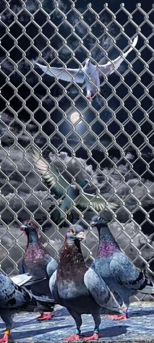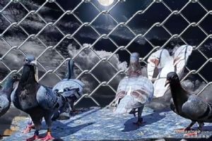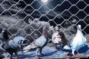 作品说明: 今天凌晨3点集鸽、训放113公公里,洁白的月光照亮了鸽舍,捉鸽入笼很方便。月光虽好、可惜如今再也不见我童年星星的记忆了,或许是导致鸽子难飞的重要原因。一阵滚滚的黑云压住了月亮,何日见云开?空气污染严重,祈祷月亮千万不能和星星一样离我们远去!