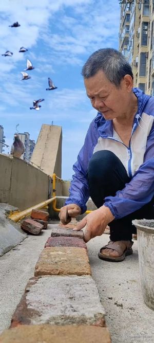 作品说明: 2025年9月10日阴转睛,气温24至35度。本舍从去年秋天到今年秋天打比赛虽然成绩不是很好,但是,归巢率较高,鸽子也就多了起来。为了给鸽子一个舒适的家,我在高温下砌鸽舍基础58个平方。半月后厂家上门安装,今天已缴预付款百分之八十,很是期待我的“赛鸽大厦落成”。