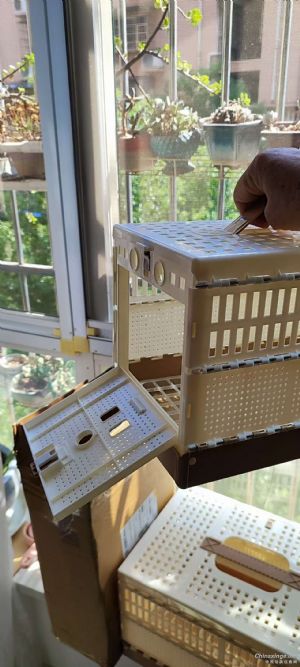 作品说明: 寒露那晚集鸽,孙女吵着要和我一起去集鸽看热闹,走进湘潭市体育中心(集鸽现场),女儿看到很多鸽友提着漂亮的塑料笼,唯有我的鸽笼是木头(笨重),于是,她买了两个漂亮的塑料、时尚鸽笼送给我,真是太高兴了。今晚集鸽使用,希望秋赛好运!