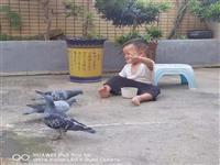 小娃娃与鸽子玩耍的画面温馨和谐,天真无邪的眼神,肉嘟嘟的小脚丫,真的太可爱啦!