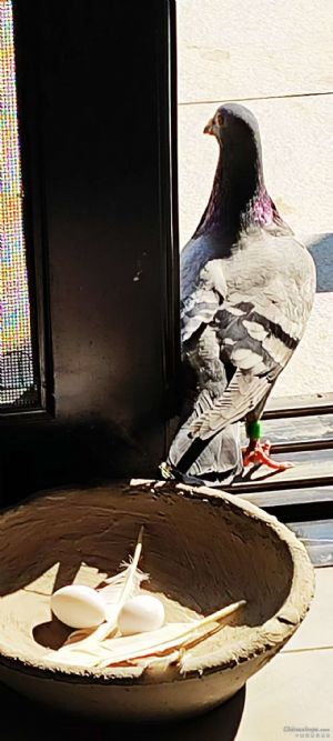 作品说明: 买了新房正在装修,养在露台上的鸽子在门边下蛋了,亲和力真好,来年的奖金知多少?