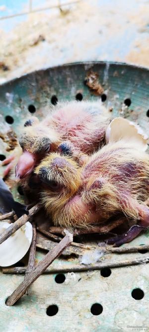 两个建议,第一巢盆不要用塑料的。第二鸽子出的一大一小很正常,只要喂的没问题生长发育没问题,尽量不要两喷一。