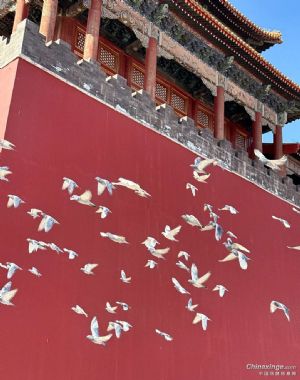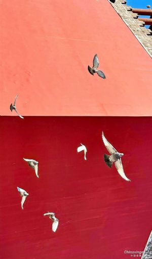 故宫午门偶遇赛鸽家飞