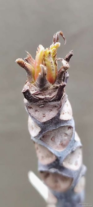 作品说明: 二月二十六日、天气:雨转晴,气温5至18度,这是一场绵绵的春雨,雨中一路弥漫着香气,我闻到露台上种的香春树散发春香,让我领会到小雨诉说春天的神秘,这是一冬苏醒的春意。小雨轻轻敲打着新的春芽,我们呼吸着香春树的气息,预示今年养鸽好运到来。