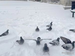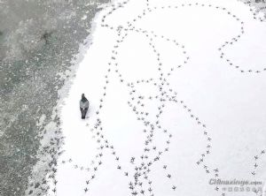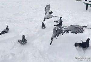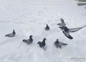 作品说明: 小鸽子们扑棱着翅膀,在厚厚的积雪上玩耍嬉闹。它们时而低头啄食雪粒,时而歪着小脑袋互相追逐。瞧那头还落单了一只,它独自在洁白的雪地上印出一串串细碎的脚印,有趣极了。