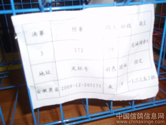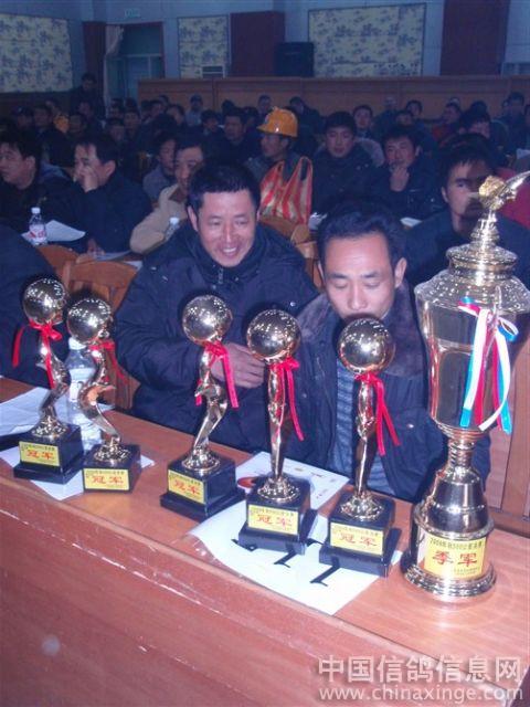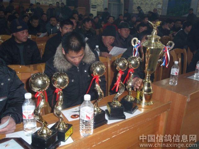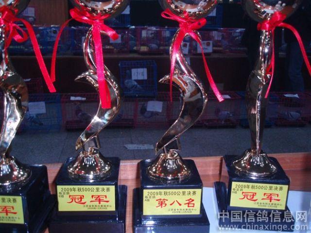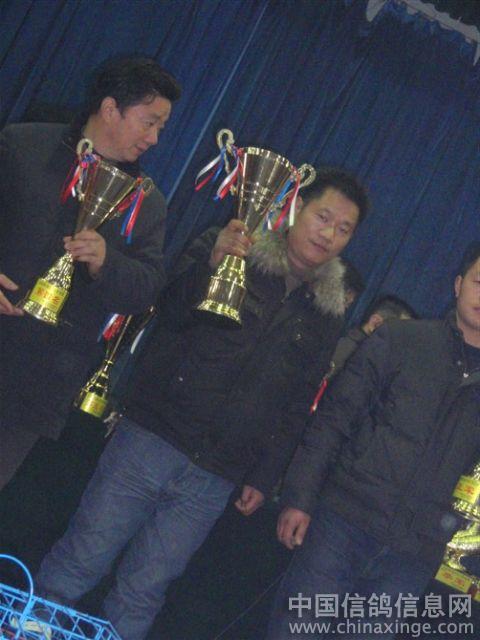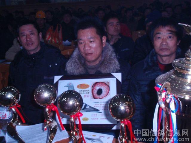 作品说明: 09年12月20日安徽龙城鸽舍勇夺金色阳光公棚季军(比冠军早到3分钟不进棚),包揽决赛指定鸽A组冠军、8名,B冠军,C冠军,D冠军,E冠军。22名,115名。团体第9名。鸽王16名。2010年1月30日安徽龙城鸽舍一行好友到江苏金色阳光公棚参加领奖及现场拍卖随拍。