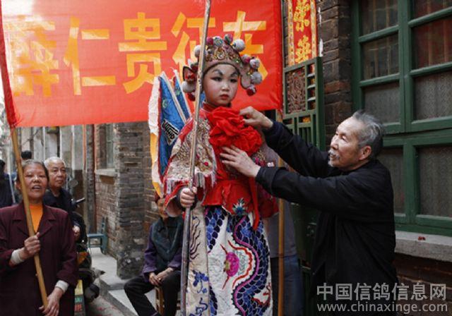 民间老艺人正在装扮故事的小演员。