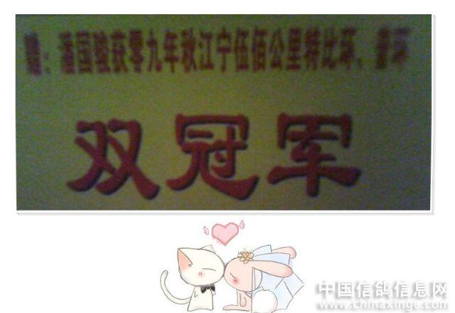 作品说明: 我赢得了,江宁区09秋大赛环,普环双冠军. 我的格言是:不当将军的士兵不是好士兵!