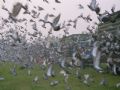 场面还是比较壮观的一定也有不少鸽子还没飞上天就撞上自己的同类了吧? |