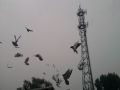 鸽子们在鸽舍附近来回飞翔!!!鸽舍附近电线和铁塔都制约着赛鸽飞翔,每年都有不少赛鸽因电线而撞伤!!