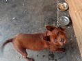 公山狗的嘴桶子小了一点,地包天,皮有一点憨,尾子有点反,母的比公的老,都粉嘴了,眼睛还有一点问题,不过枣红皮还是可以,有点杂交了 |