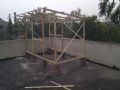 2楼 是直接放在砖上的,因为单框架已经很重了再加上一些瓦啊什么的不用担心会被风吹掉! |