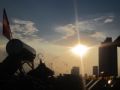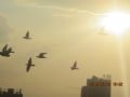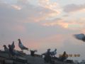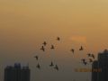 作品说明: 下午的晚霞向一羽腾飞的赛鸽在太阳下飞翔。挺好看的。大家分享一下。八哥飞的也快了。