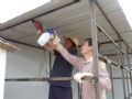四月份做的,就没考虑到鸽子在里面怎么过夏天吗?还有,角钢上钻眼可以在地面打好后再焊接,省劲多了!不过,用喷壶给钻头冷却的方法还是蛮专业的! |