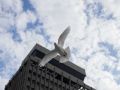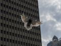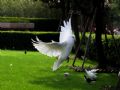 作品说明: 作者用数码相机拍的鸽子,白鸽、蓝天、高楼、绿树……鸽子的身影穿梭在城市间……