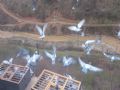 第三张图中 放飞方法有些不妥,应该打开折叠门,否则 这样容易伤到赛鸽的羽条或翅膀 。祝好运 !