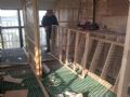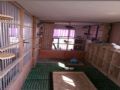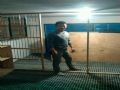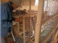 设计不好,应该在墙上打6个孔,用方钢,或钢管架空起地网,卫生好做。其次鸽舍内部布局不佳,不理想