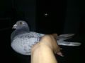 作品说明: 有鸽友说,鸽子归巢那一瞬间最是迷人,我也赞同。鸽子千辛万苦一气呵成飞 跃几百公里就为了回家,爱鸽人常有感叹它不凡的魅力。 春季五只上场,经历训放两次大雨滂沱,幸未失一羽。这次350公里预赛,仍 是五只上场,羽翼未丰,不敢与名家争长比短,只望下站决赛能得小奖也足 以。此次预赛当天归四羽,失一特比小雌,隔天仍无着落,心想无望。 没想第三天下午小雌惊现鸽棚,回来翅膀血迹般般,赶紧调配食水善加款待, 随后检查见翅下受伤,但嘴脚干净,未见打野现象,虽然迟归但着实欢欣,只 待三天后检查能否决赛上场,不能亦好生对待